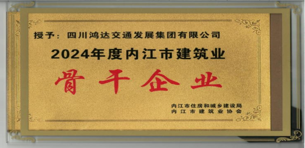 2024年度,四川鴻達交通發(fā)展集團有限公司獲“2024年度內江市建筑業(yè)骨干企業(yè)”及“四川省建筑業(yè)先進企業(yè)”稱號,兩項榮譽是對鴻達交發(fā)公司深耕建筑領域的專業(yè)認可和長期堅持高質量發(fā)展、積極履行社會責任的高度肯定。